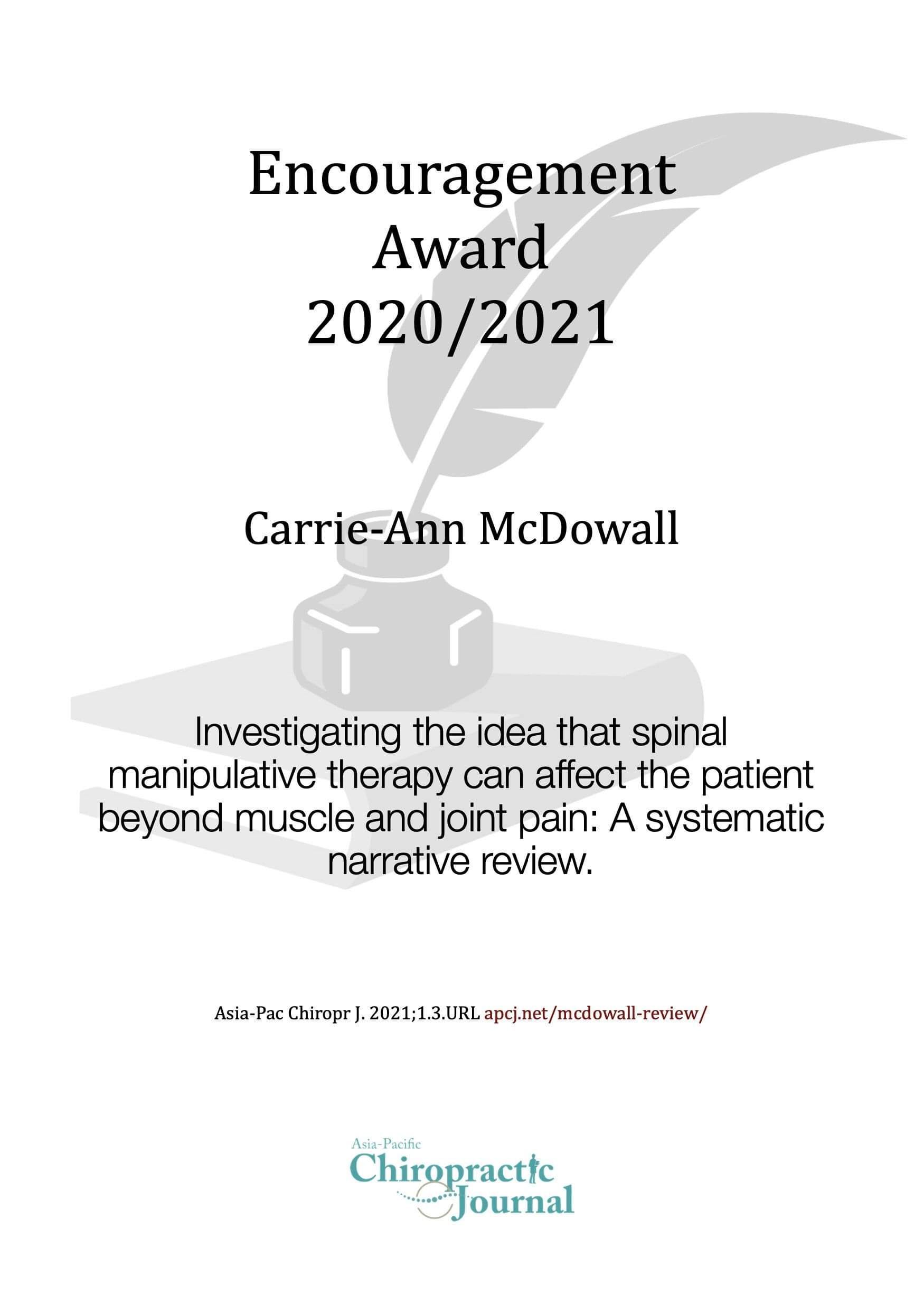 For many years the Chiropractic Journal of Australia annually awarded the paper judged by the Editorial Board as making the strongest contribution to the literature of chiropractic. This recognition has not recently occurred so we appropriate the idea because we believe those who make the effort to advance our professional knowledge should be recognised. All papers published in the first volume of the Journal were eligible, and caused wonderful discussion among the judging panel.